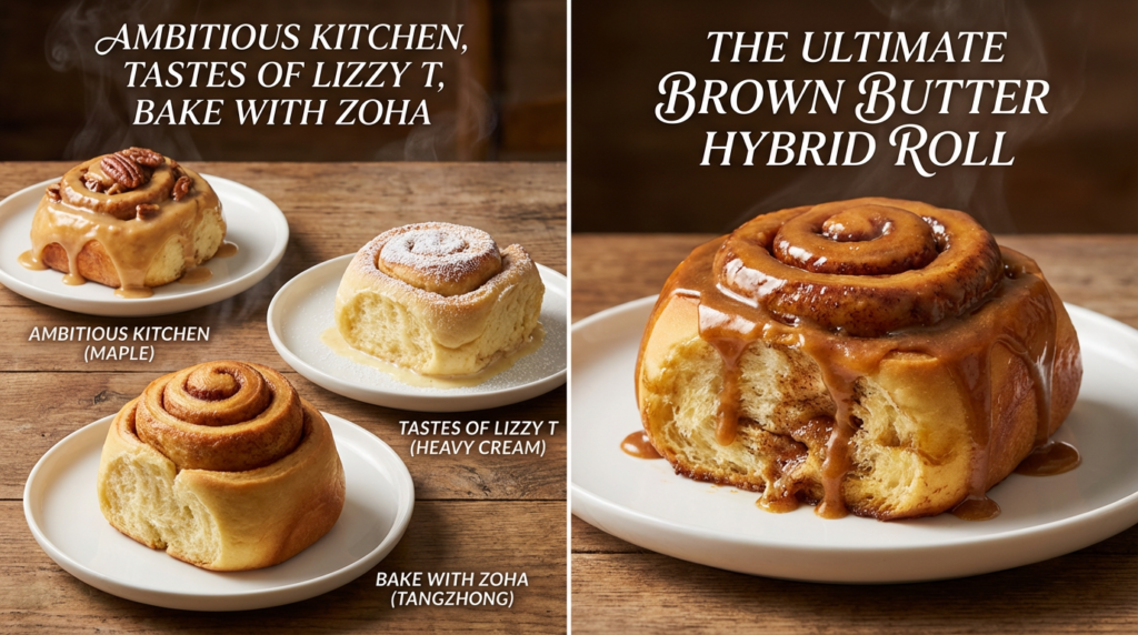 To achieve the ultimate best cinnamon roll recipe—balancing the fluffiness of Bake with Zoha with the gooiness of Tastes of Lizzy T—you must use the Brown Butter Hybrid Method. This recipe combines Tangzhong (for extended shelf-life and moisture), Bread Flour (for superior structure), Brown Butter (for rich, caramelized depth), and a Heavy Cream Soak (for maximum tenderness).