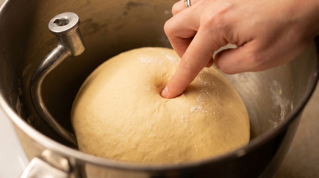 Perfectly mixed dough leaves a slight indent that slowly springs back when touched