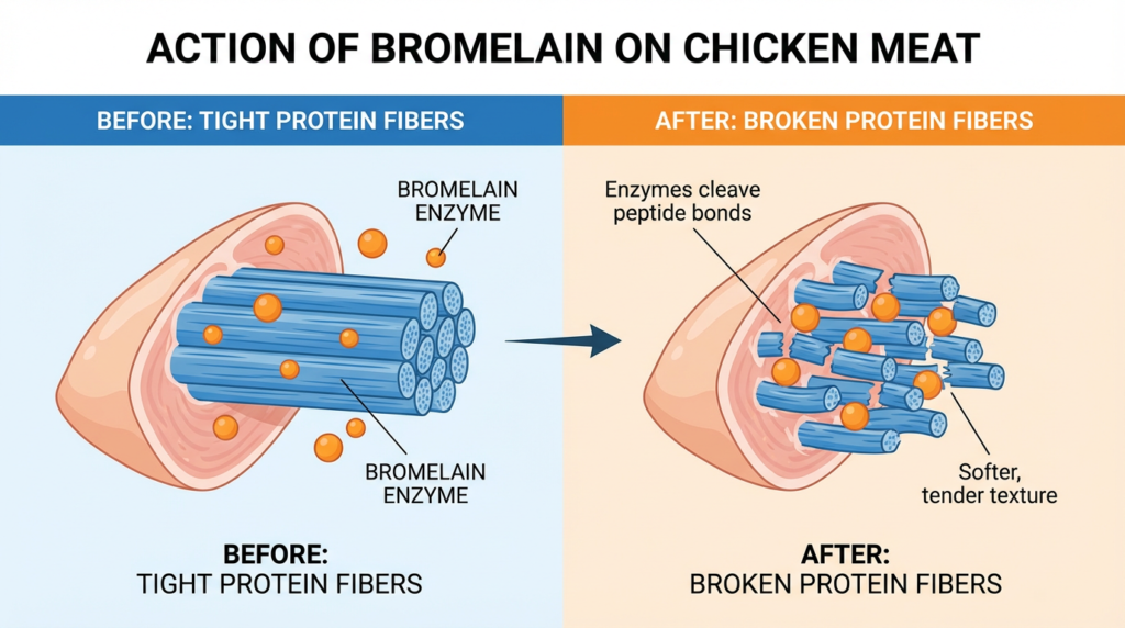 1. Tenderization: Bromelain breaks down tough collagen fibers, making even budget-friendly chicken cuts remarkably tender