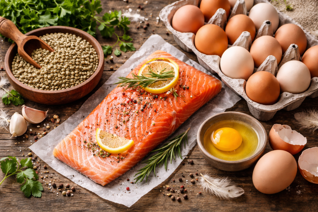 • Wild-Caught Sockeye Salmon: High in Astaxanthin (the red pigment) and Omega-3 fatty acids, which are crucial for brain health and reducing systemic inflammation.