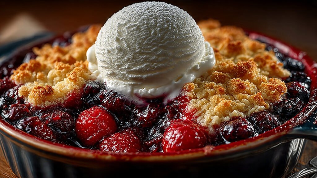 A simple, warm fruit crisp with a scoop of cold vanilla ice cream is the perfect contrast to end your weekend.